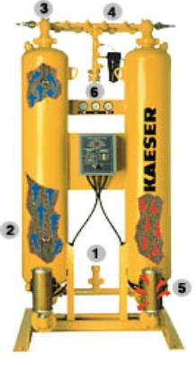 Wet compressed air must first be filtered to remove particles and oil aerosols before it can be directed to the dryer inlet port where this air, via a multi- directional valve, will be directed up through a bed of activated alumina desiccant where its dew point is significantly reduced (typically to -40°F) by the time it exits the on-line (drying) tower.